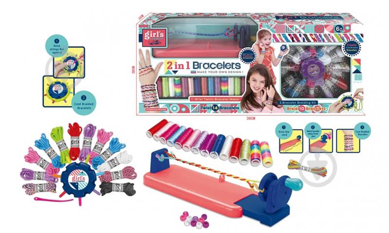 مجموعة مجوهرات 2 في 1 من جيرلز كريتور - أداة صنع أساور المعصم الملتوية ومجموعة التضفير - مجموعة صنع أساور الصداقة بنفسك مع خيوط وخرز ملون - هدية إبداعية للأعمار من 6 سنوات فما فوق