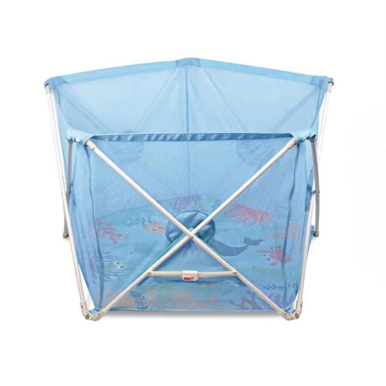 شبكة متينة وإطار متين: مصنوعة من نسيج شبكي شفاف يسمح بمرور الهواء، مما يتيح لك مراقبة طفلك بسهولة مع ضمان تهوية ممتازة. يضمن الإطار المستقر ثبات ساحة لعب الطفل في مكانها.