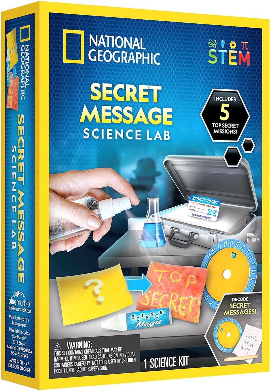 - Complete Secret Science Missions! Use secret messages, decoder wheels, and other spy science techniques to complete 5 top-secret spy science missions with the National Geographic Secret Message Science Lab!