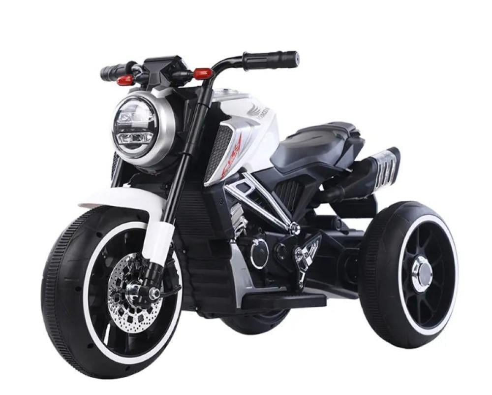 - Electric Ride-On Motorbike for Kids – 6V 7AH Battery, Dual 380W Motors, LED Lights & Music – White Electric Ride-On Motorbike for Kids – 6V 7AH Battery, Dual 380W Motors, LED Lights & Music – White
