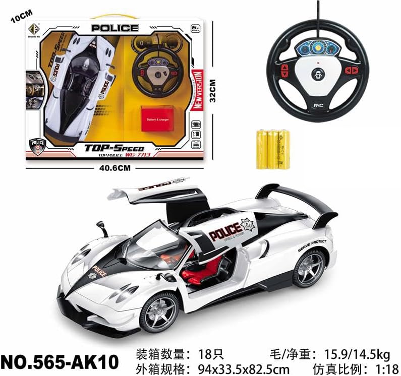 - 1:18 Scale Remote Control Police Supercar with Steering Wheel Controller 1:18 Scale Remote Control Police Supercar with Steering Wheel Controller