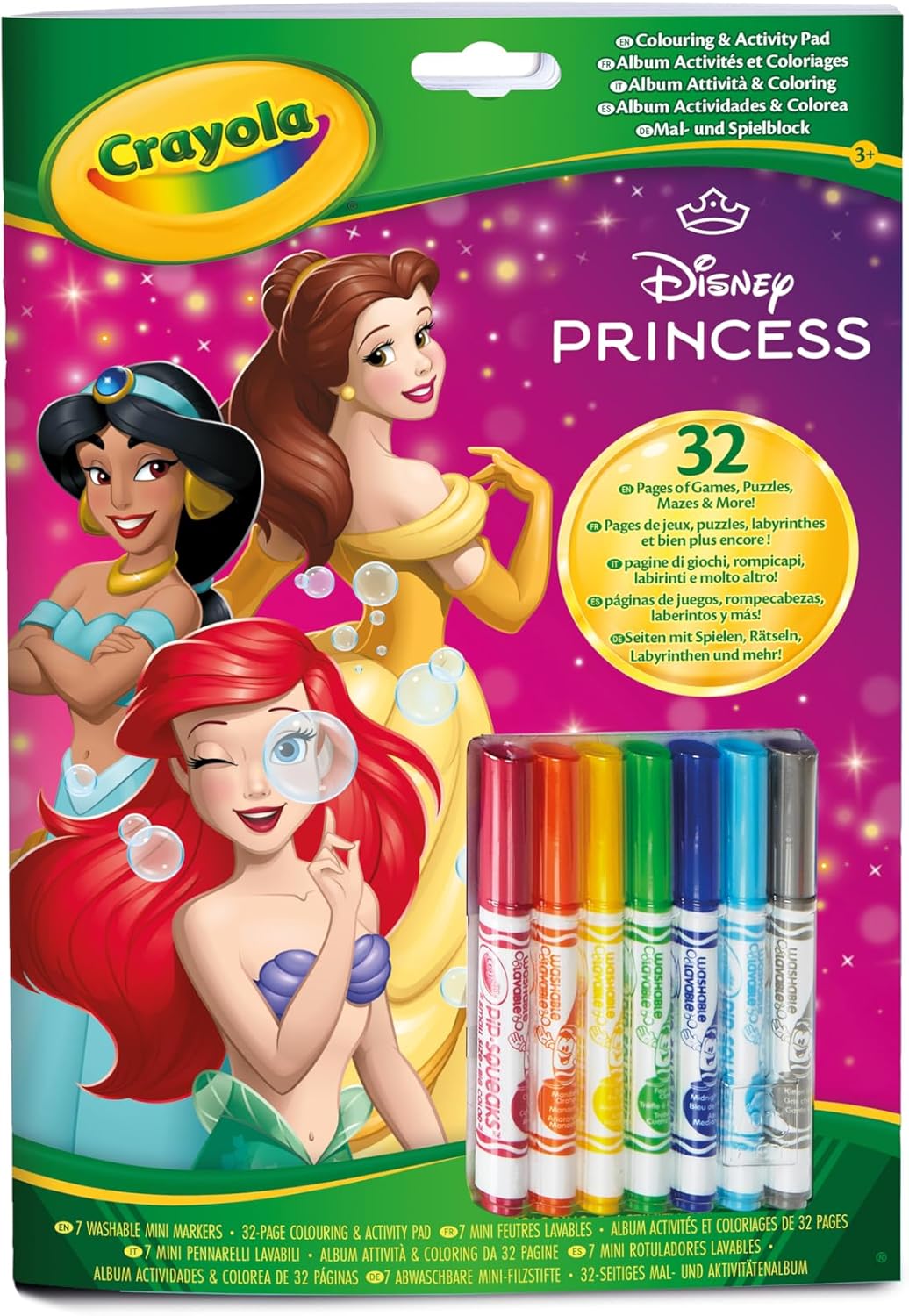 - CRAYOLA - Disney Princess Activity & Coloring Album, 32 Colouring Pages and 7 Mini Washable Markers CRAYOLA - Disney Princess Activity & Coloring Album, 32 Colouring Pages and 7 Mini Washable Markers