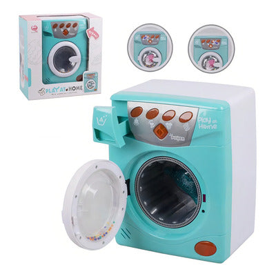 Bring household chores to life with the Play at Home Washing Machine. Designed for little helpers who love to mimic their parents, this interactive toy offers a "real working function" that makes playtime feel authentic and engaging. With its bright teal design and user-friendly interface, it's the perfect addition to any play kitchen or laundry room set.
