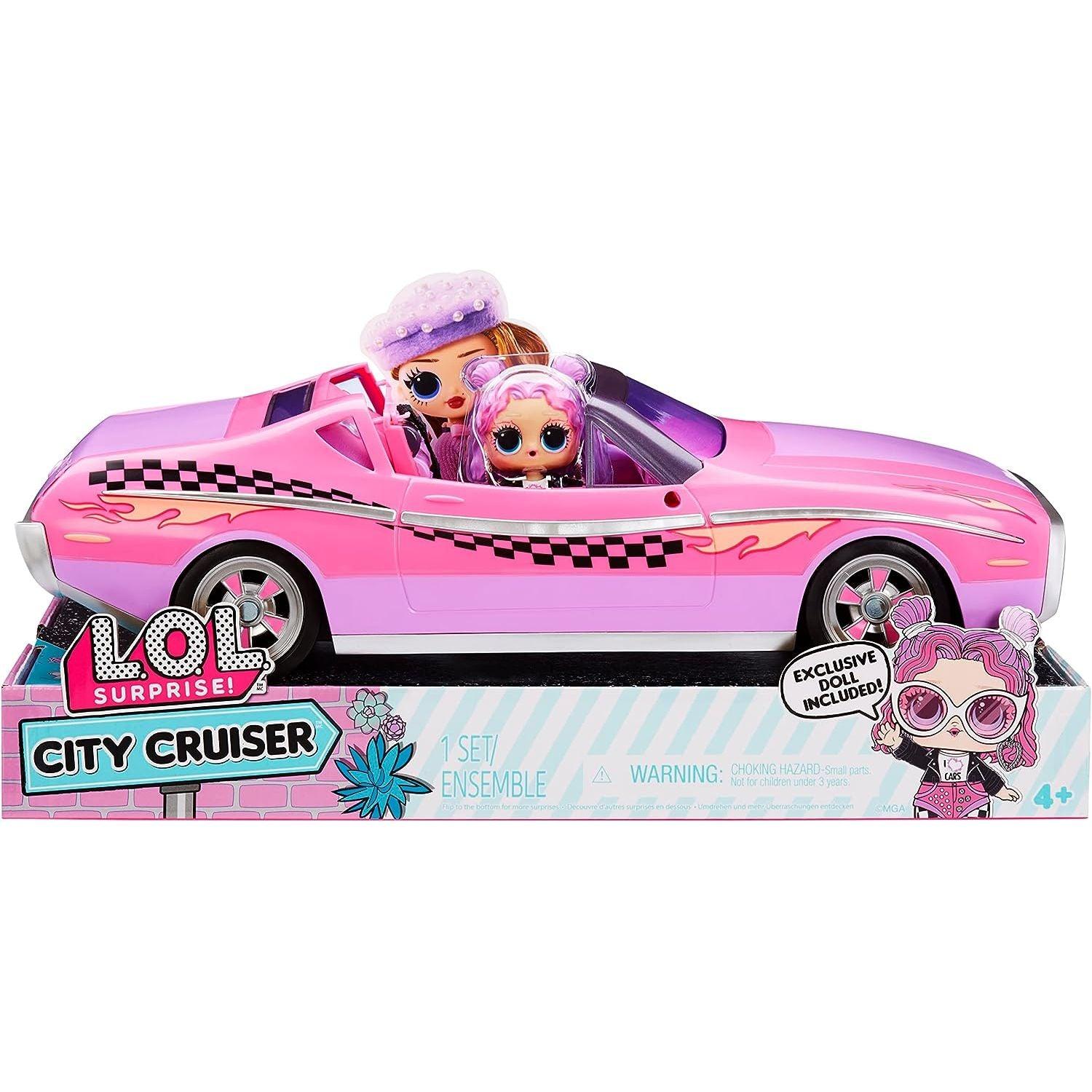 - DRIVE IN-STYLE with the all-new L.O.L. Surprise City Cruiser, a pink and purple 2-seater sports car that has a trendy retro finish including black and white checkers and stylish flares, capturing everyone’s attention on the road.