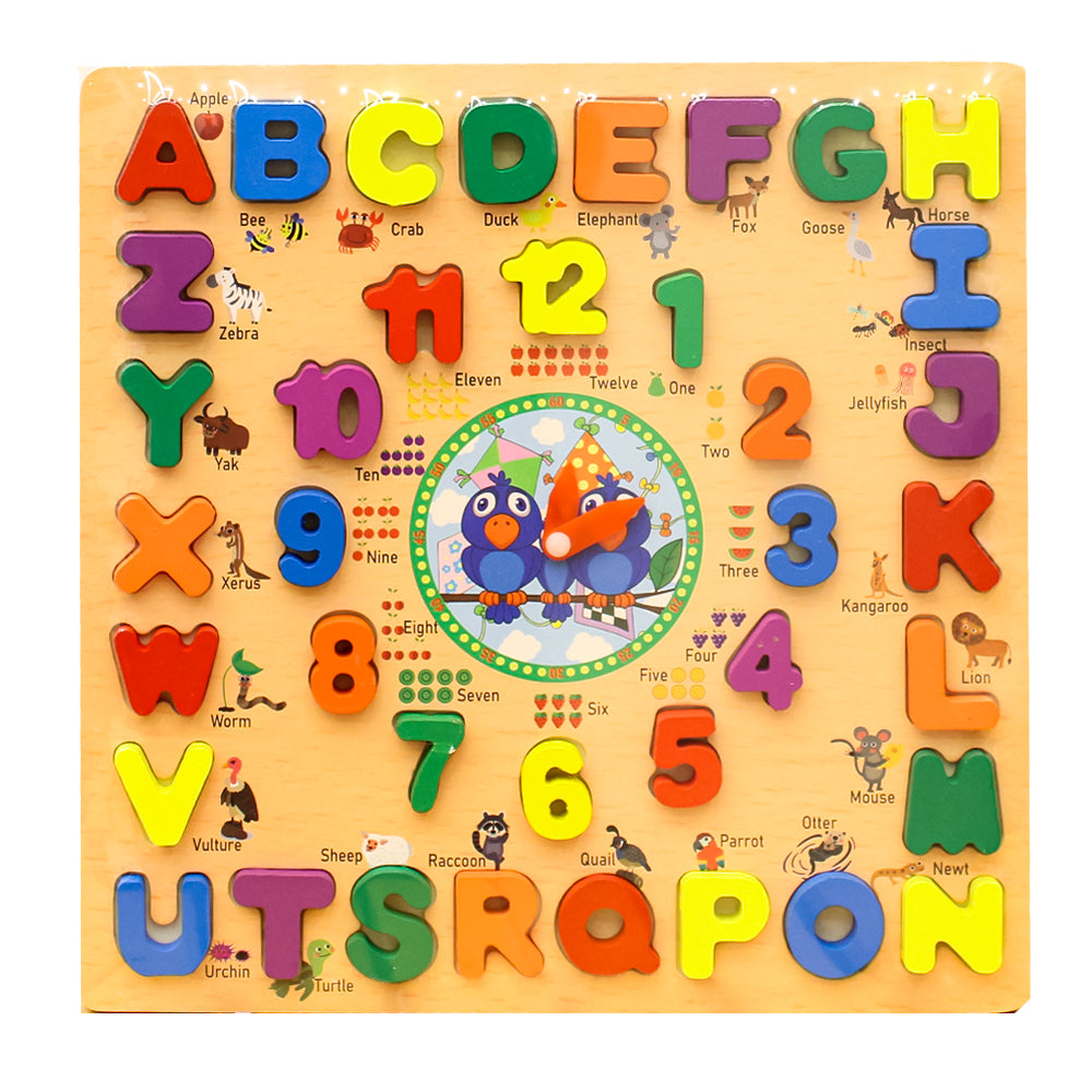 - Wooden Alphabet & Number Puzzle Board with Clock – Educational Learning Toy for Kids (30x30cm) Wooden Alphabet & Number Puzzle Board with Clock – Educational Learning Toy for Kids (30x30cm)